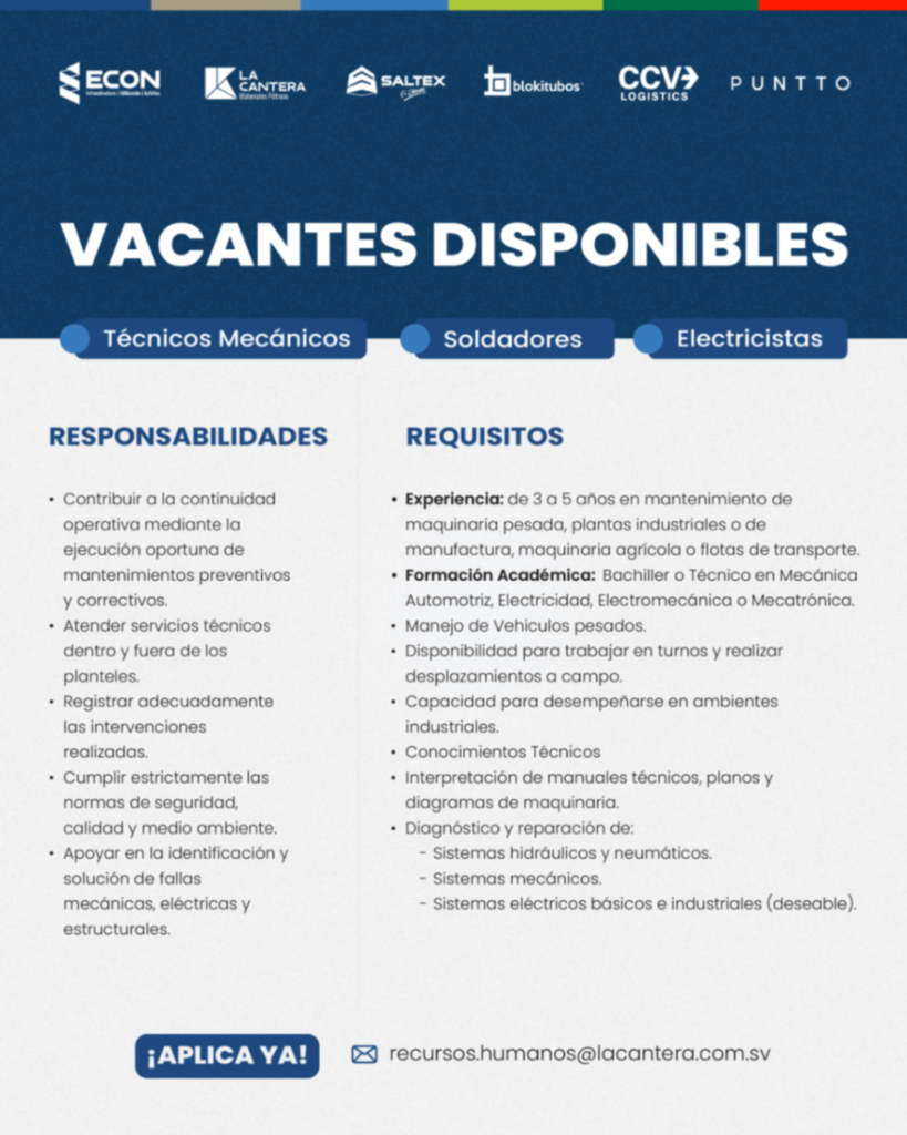 Técnicos mecánicos, Electricistas y Soldadores